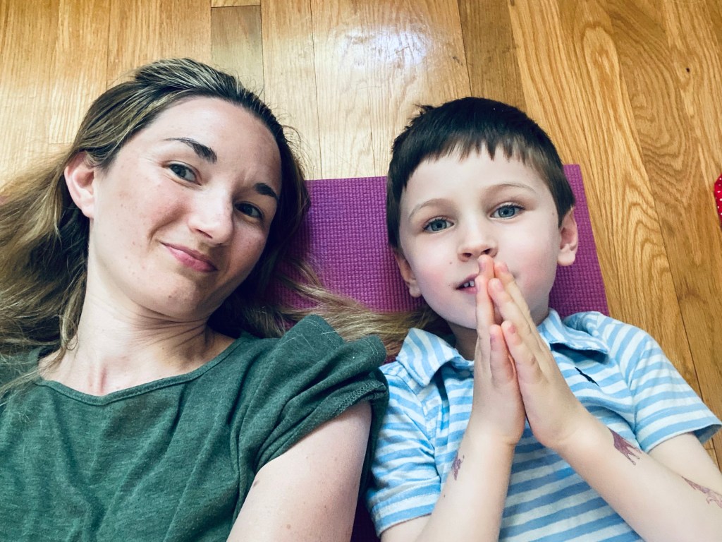 My first workout, post illness. My little guy joined me for some restorative yoga 🧘🏻♀️